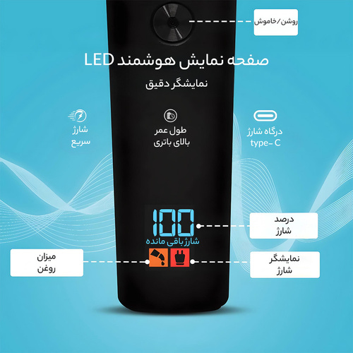 این ماشین اصلاح وی جی ار یک ماشین اصلاح بسیار با کیفیت با طراحی ارگونومیک میباشد این دستگاه دارای یک نمایشگر دیجیتال میباشد که میزان شارژ دستگاه و قابلیت نیاز بودن به روغن را نشان میدهد.و دارای 3 عدد شانه 1 و 2 و 3 میباشد
